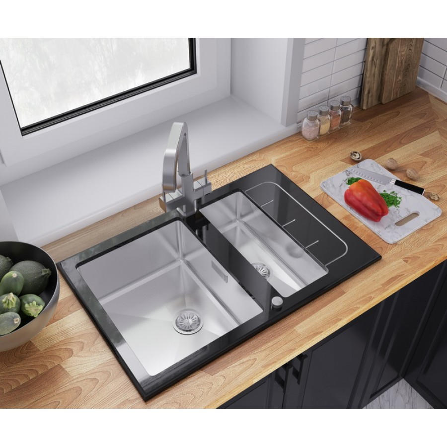 Подобные мойки зачастую дополняют смесителями из нержавеющей стали ZorG Inox. Закаленное стекло кухонной мойки ZorG GS 7850-2 BL стойко выдерживает любые нагрузки, при этом конструкция в универсальном черном цвете выглядит достойно и эксклюзивно, она идеально сочетается со стеклянной варочной поверхностью.